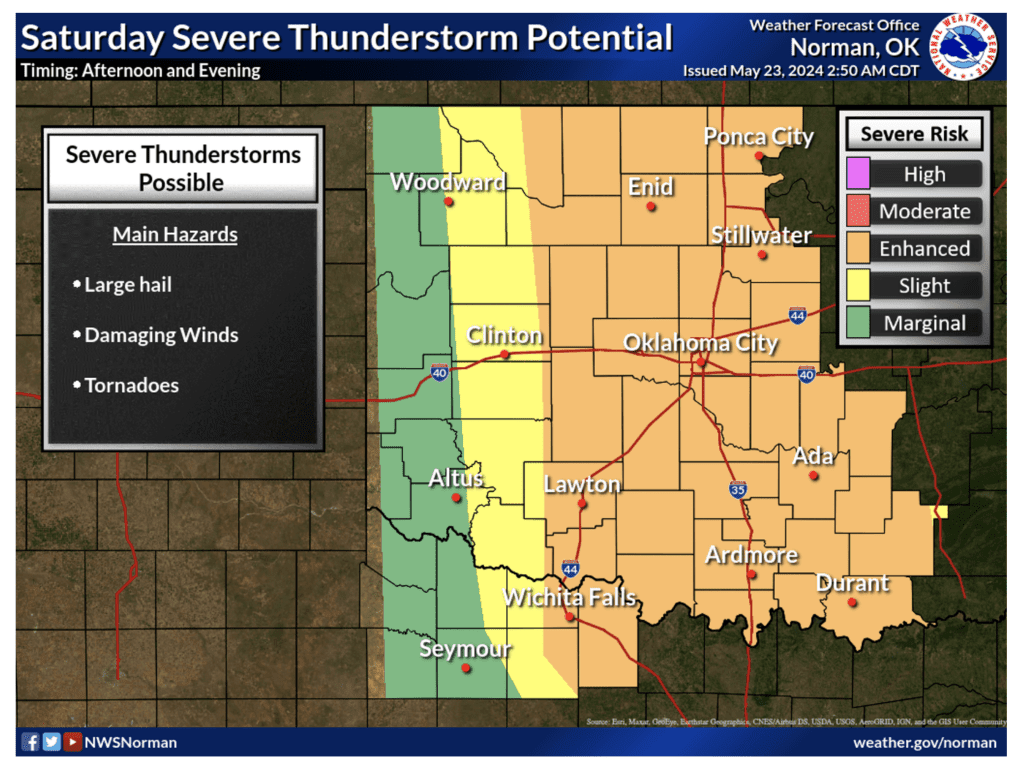 Below, see the 6-10 day precipitation and storm potential outlook provided by the Oklahoma Mesonet.