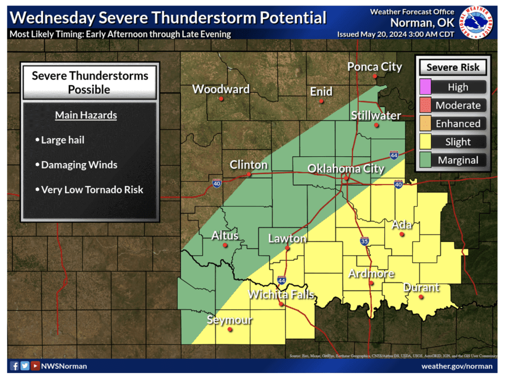 Proteins ranging from 11.1% to 12.5% with more of the proteins on early cuttings being reported in the 11.9% to 12.5% range. Early yields being reported at 40 to 45 bushels per acre. Higher yields are predicted on intensively managed wheat. Keep in mind this region has been considered the bright spot of the state for growing conditions this year. The state has received a large amount of hail damage in South Central, Oklahoma last night with large amounts of hail damage in other regions of Southwest Oklahoma and Northern Oklahoma over the past two weeks. A more comprehensive report will be published on Thursday, May 23, 2024.