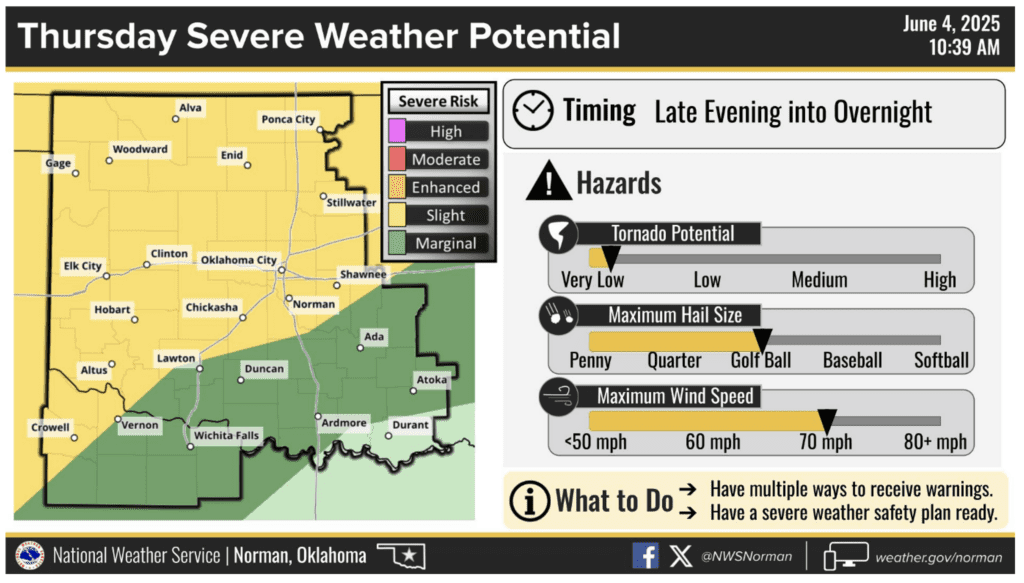 See the 7-day forecast provided by the Oklahoma Mesonet and the 5-day precipitation forecast, along with storm potential for Monday and Tuesday.