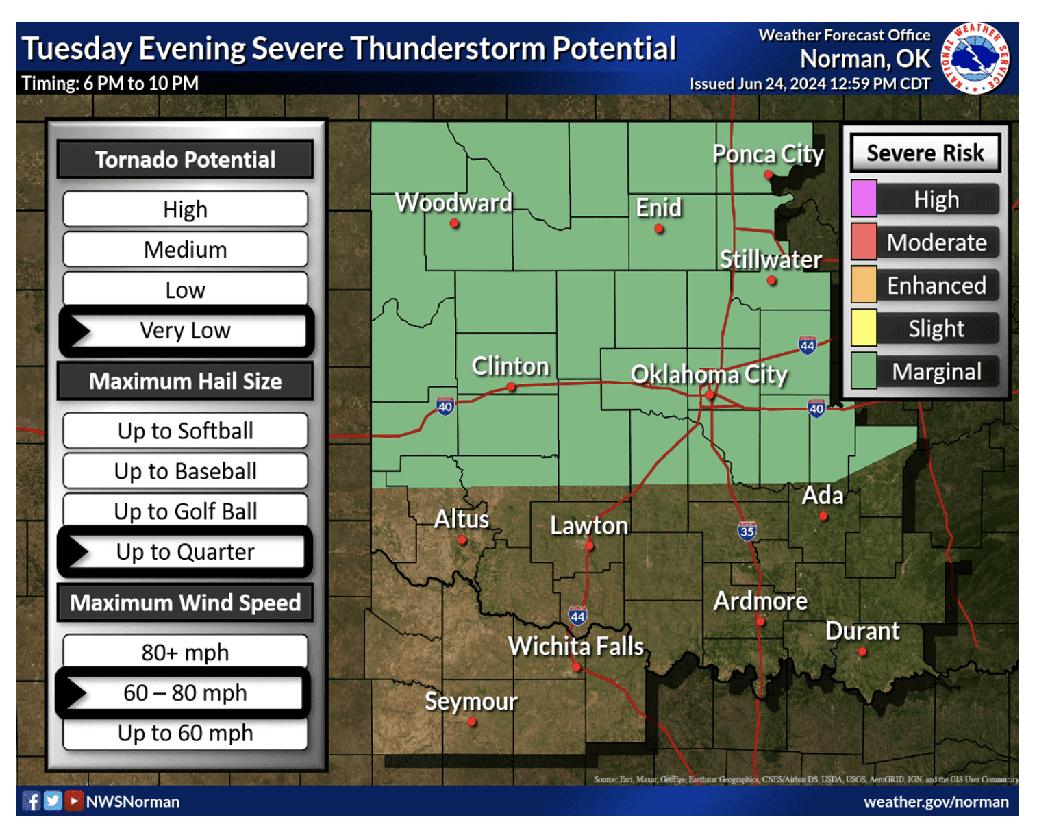 Below, see the Tuesday evening Thunderstorm potential for the Panhandle and northwest Oklahoma.