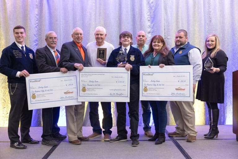 Destry Swaim, FFA student from Okeene wins 1st place and Grand Champion at the 2023 4-H/FFA Junior Wheat Show, and Clinton Chaney with the Medford 4-H Club wins Champion 4-H!